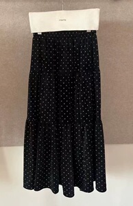 波点丝绒拼接半身裙女秋季2025秋冬新款高腰显瘦大摆蛋糕裙长裙