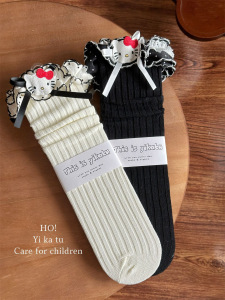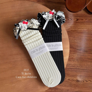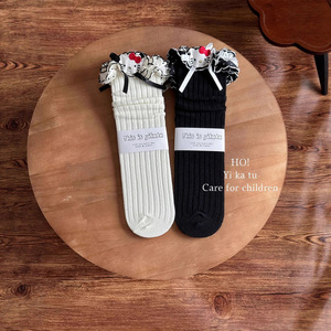 Yikatu伊卡兔儿童袜子批发2025秋款卡通绣标花边亲子袜无跟81