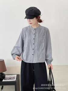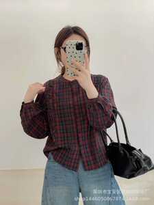 琪镌绘制格子衬衫2025秋季新款复古宽松百搭圆领长袖上衣女装衬衣