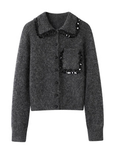 F*B女装2025年秋季新款高级感流苏设计百搭翻领针织开衫毛衣外套