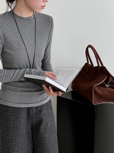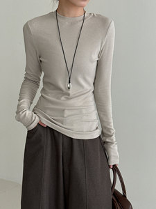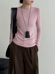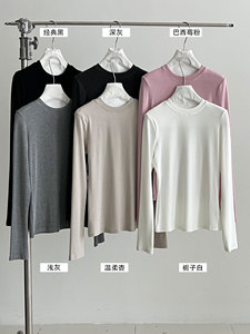 鹿西别致修身显瘦纯色圆领打底衫女秋季新款内搭正肩长袖上衣2049