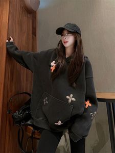 美式复古贴皮刺绣连帽卫衣男女秋冬设计感个性宽松套头上衣