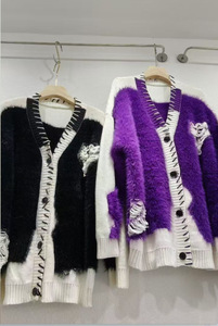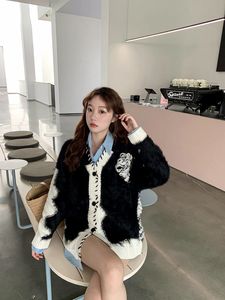 欧美风重工爱心刺绣开衫毛衣女2025秋冬新款宽松慵懒风针织外套厚