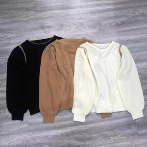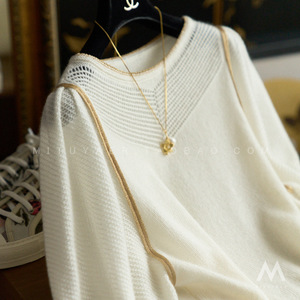 店主自穿推荐 小资气质领口镂空金丝边泡泡袖羊毛针织衫Q00078