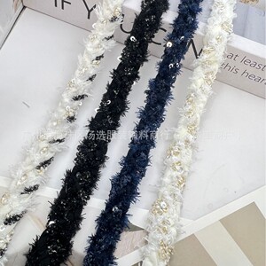 跨境重工高端小香风花边辅料金属亮片编织黑白经典diy服装织带包