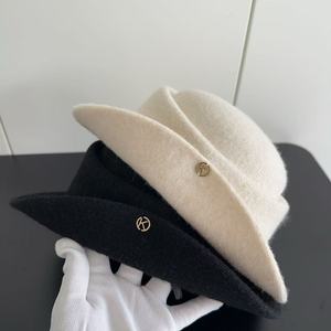 法式赫本风优雅白色礼帽女千金风大头围复古羊毛呢显脸小渔夫帽子