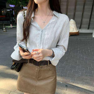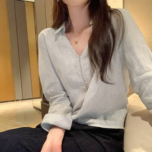 法式轻奢高级感条纹亚麻长袖衬衫女2025秋季新款时尚减龄洋气上衣