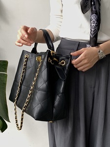 跨境洋气女包高级感个性菱格托特包中古链水桶包质感大容量单肩包