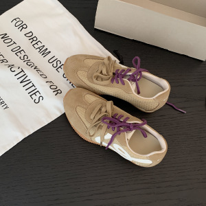 2025秋季复古撞色鸳鸯鞋带肌理感休闲板鞋女圆头百搭厚底德训鞋