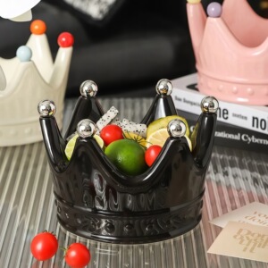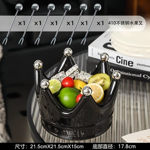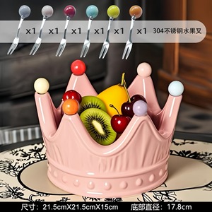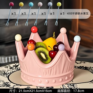 创意皇冠陶瓷果盘带水果叉网红ins高颜值客厅茶几家用零食盒果盘