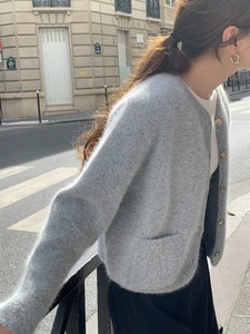现货 2025秋季新款韩国东大门OU*CE气质复古毛衣金扣针织开衫外套