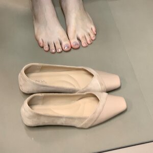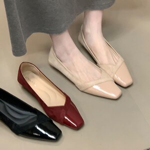 软皮版~法式小香风单鞋女2025秋季新款绒面拼接晚晚鞋通勤温柔鞋