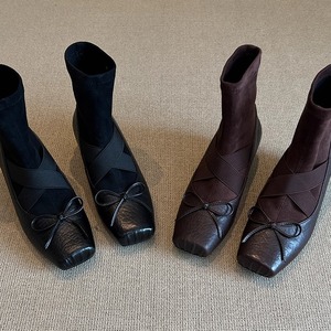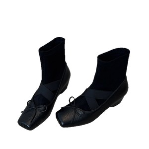 羊皮版~新款小众复古甜美法式芭蕾瘦瘦靴袜靴显瘦百搭蝴蝶结女靴