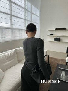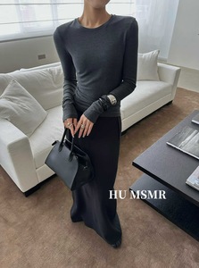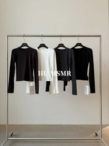 广州十三行HUMSMR新款早秋高级感显瘦圆领修身打底衫T0058