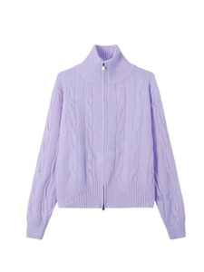 半高领毛衣外套女香芋紫麻花拉链2025新款秋季穿搭加厚多巴胺上衣