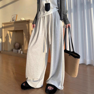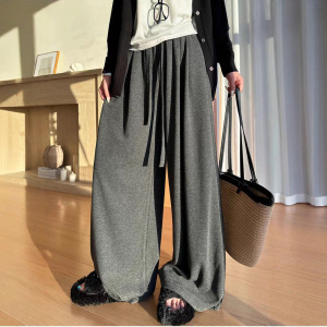 糯米绒阔腿裤女2025秋季新款宽松慵懒风休闲裤垂坠感直筒拖地裤子