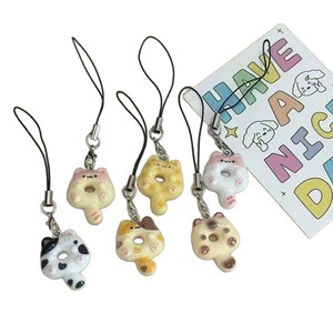 暹罗猫甜甜圈猫饼手机绳可爱卡通手机链甜美学生书包挂件闺蜜礼物