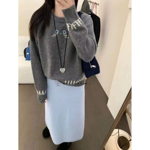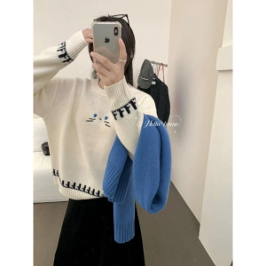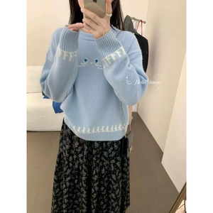 韩系可爱温柔猫咪上衣针织衫2025秋冬新款提花别致毛衣慵懒风套头