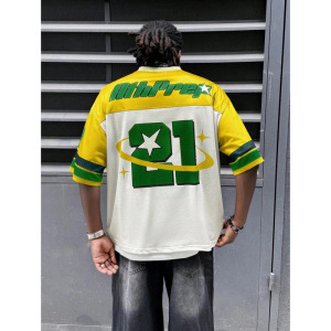 跨境外贸新款T-shirt 数码印花宽松针织短袖针织T恤