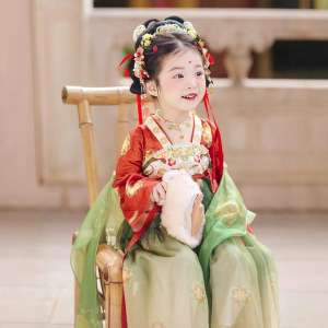 2025秋季新款唐宫夜宴女童汉服秋季古装连衣裙唐装儿童古风公主裙
