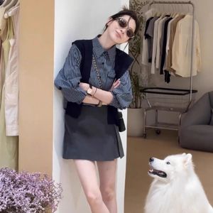 条纹衬衫女设计感小众上衣披肩2025秋季新款韩版宽松百搭两件套