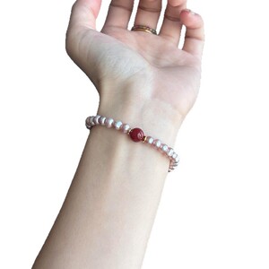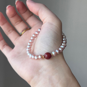 粉色天然淡水珍珠手串女朱砂红串珠手链轻奢高级感新中式手饰