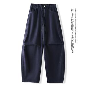 爆款女装薄款纯棉弯刀裤女2025高腰宽松休闲裤百搭九分直筒工装裤
