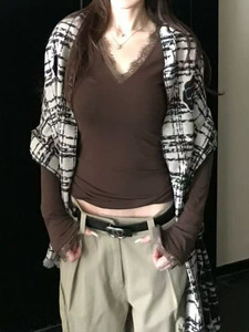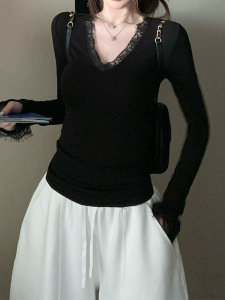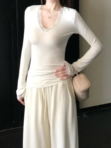 “软香Lace”钓系蕾丝打底衫 内搭战袍定染花型立体精致T恤女显瘦