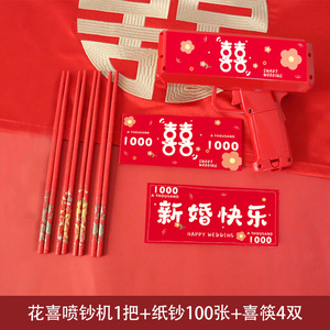 新婚快乐喷钞枪1把+喜钞100张+喜筷4双