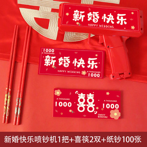 新婚快乐喷钞枪1把+喜钞100张+喜筷2双