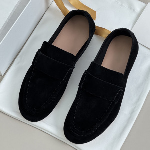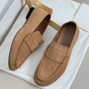 高版小众the磨砂牛皮一脚蹬懒人乐福鞋女真皮厚底小皮鞋平底单鞋