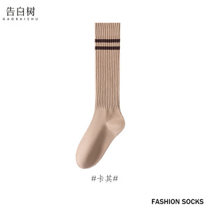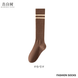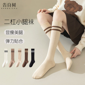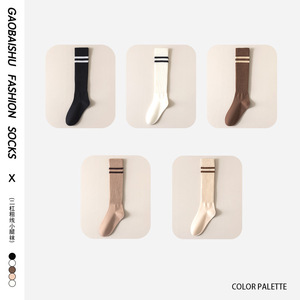 中筒袜子女秋冬新款纯色双杠瘦腿小腿女袜JK百搭学院风女士堆堆袜