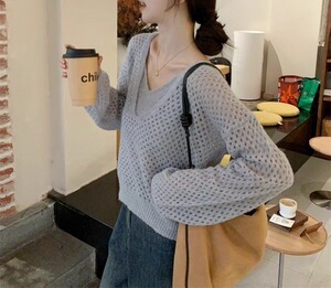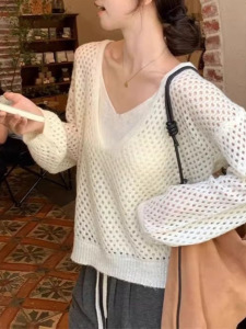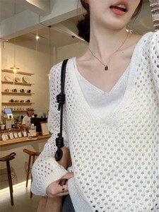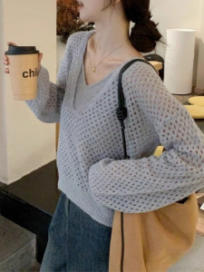 巨好看的镂空针织罩衫叠穿内搭背心两件套女早秋韩系气质显瘦上衣