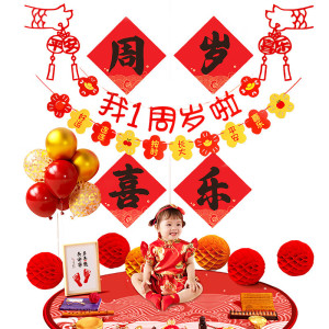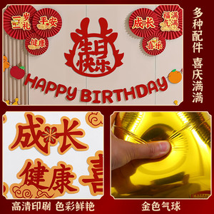 周岁生日布置抓周仪式布置东西套餐龙宝男女孩宝宝背景墙纪念用品