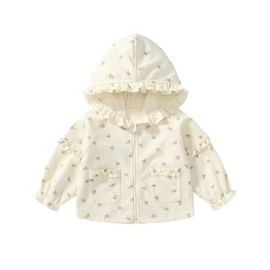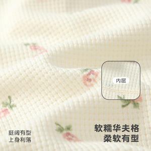 女童碎花华夫格外套宽松2025年春秋装洋气婴儿宝宝连帽上衣拉链衫