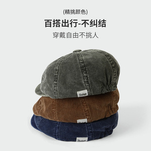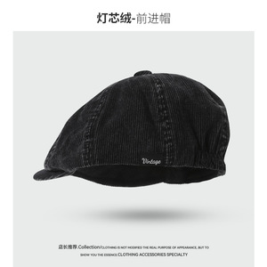 春秋新款百搭文艺风灯芯绒报童帽日系复古小众画家帽贴布前进帽