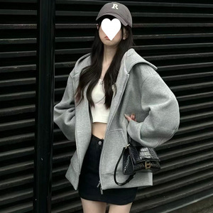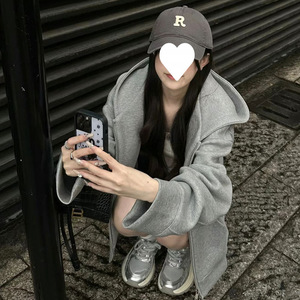 连帽卫衣女春秋oversize薄款拉链开衫外套宽松韩系慵懒chic风上衣