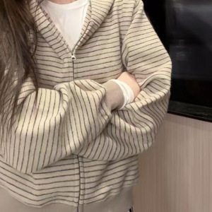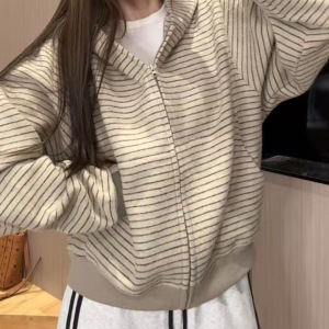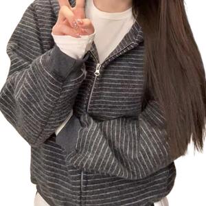 2025早秋条纹连帽拉链外套女小众慵懒风设计感休闲宽松开衫其它