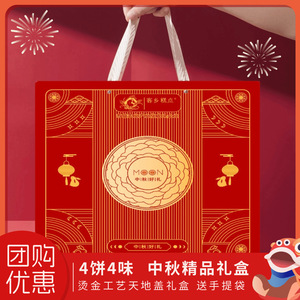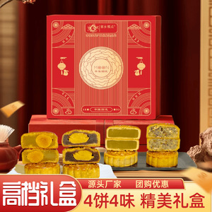 广式蛋黄月饼礼盒4粒装团购福利莲蓉豆沙五仁月饼送长辈客户礼品
