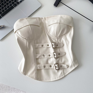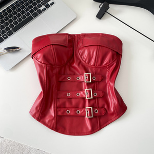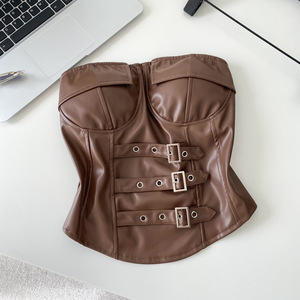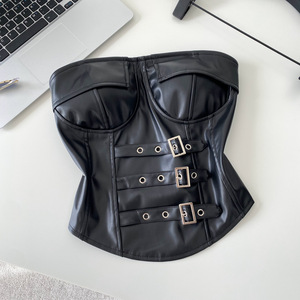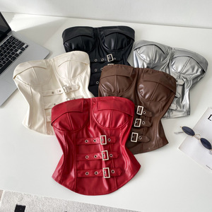 纯欲辣妹设计感纽扣系带无袖抹胸背心女秋季收腰百搭别致皮衣上衣