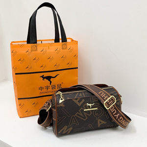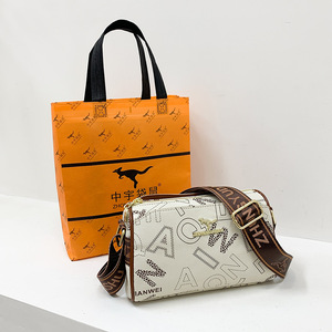 时尚休闲字母印花女士圆筒包大容量外贸新款宽肩带单肩斜挎包批发
