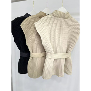 针织毛线系带秋冬新款棉马甲短款女显瘦时尚洋气背心潮
