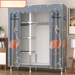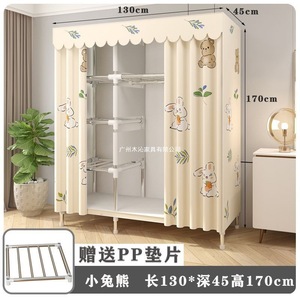 简易衣柜家用卧室钢管加粗加固组装全钢架布衣柜出租房用收纳衣橱