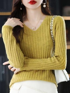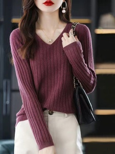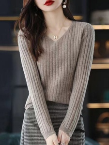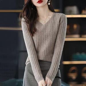 长袖针织打底衫女V领套头毛衣2025年早秋季辛苦百搭内搭毛衫上衣