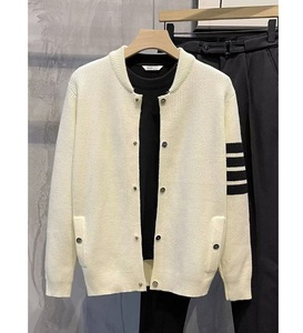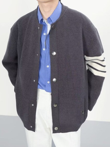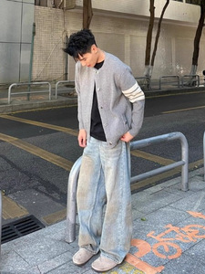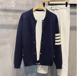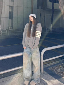 慵懒风秋冬毛衣四条杠网红情侣扣子美式针织衫潮牌外套爆款高级感