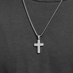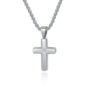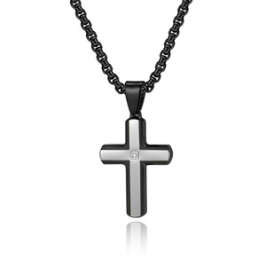 原创新款十字架吊坠欧美锁骨链男士经典滚牙间电不锈钢毛衣项坠链