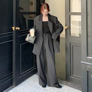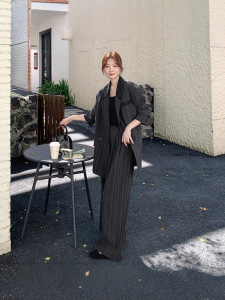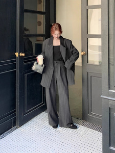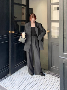 2025早秋新款原创首发 已出货 条纹撞色西装+阔腿裤套装