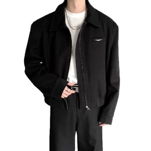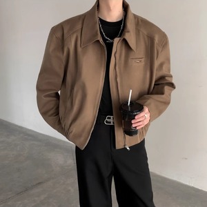 美式短款翻领夹克男春秋简约复古轻熟风上衣潮流商务行政休闲外套
