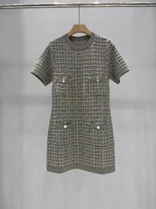 2025新款小香风圆领针织洋气减龄秋装2025新款短袖连衣裙女