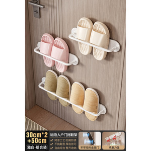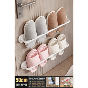 磁吸款/优雅白入户门磁吸拖鞋架【双人款50cm+三人款70cm】_